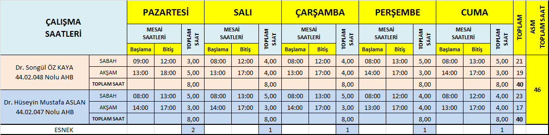 Çalışma Saatlerimiz
